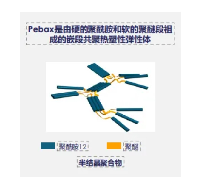Pebax® 弹性体是由聚酰胺硬段和聚醚软段组成的嵌段共聚物。通过控制硬段和软段以及它们的比例,无需添加任何增塑剂,就可以得到不同柔韧度、不同软硬度的弹性体规格。 Pebax® 弹性体这一独特的聚合物完美地结合了聚酰胺的刚度和聚醚/聚酯的柔韧性及弹性。