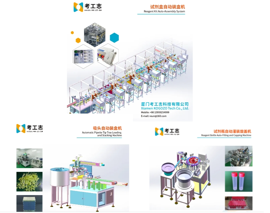 试剂盒自动装盒机 专为IVD、医药及生物科技行业设计,用于自动将试剂瓶、说明书、耗材等组件按规格装入包装盒并完成封盒,实现高效、标准化包装。核心功能包括自动上料、组件整合、装盒封盒及视觉检测剔除。该设备可替代人工,提升效率(约30盒/分钟),减少误差,适配多规格切换,满足IVD行业规模化与无人化生产需求。