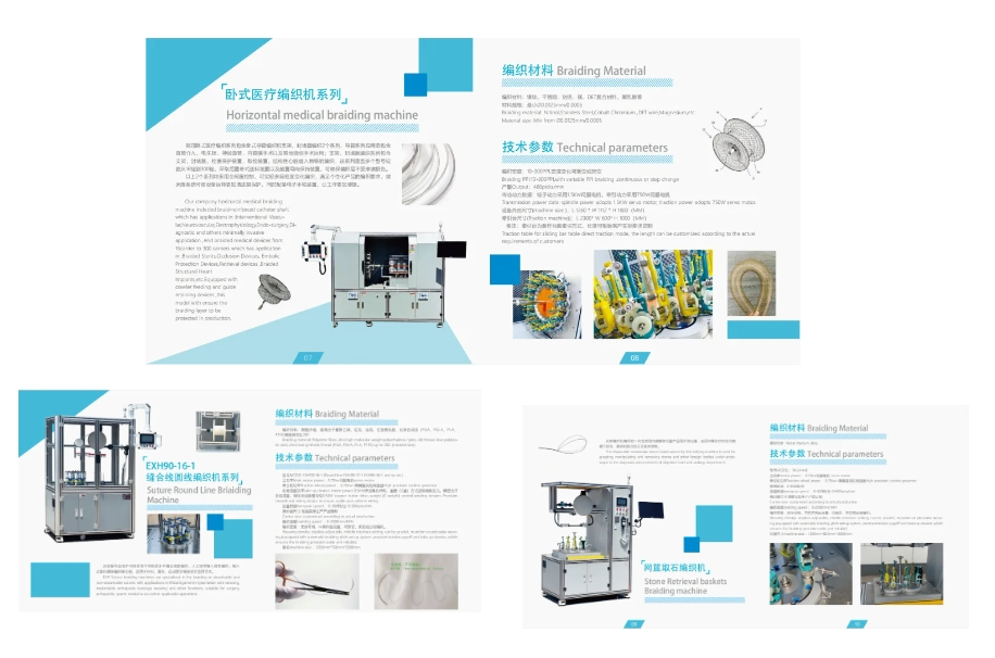 我司卧式医疗编织系列包含卧式导管编织和支架、封堵器编织2个系列,导管系列应用范包含 血管介入,电生理,神经血管,内窥镜手术以及其他微创手术运用
