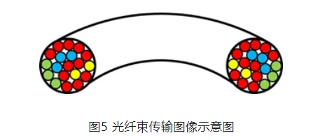 第二类观察方式是通过光纤束将图像直接传导出来。光纤束中的每根光纤可以传导一个像素图像,一束光纤则可以传导一副图像,如图5所示: