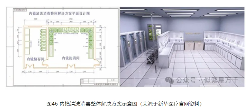 内镜中心建设涉及内镜消洗及存储工作区域规划设计及建设以及配套设备提供的整体解决方案,如图46所示: