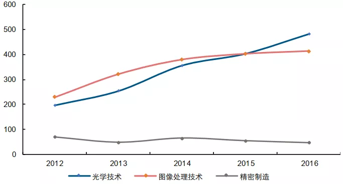 除了在精密制造、光学技术、图像处理技术上有领先优势外,进口厂商还为以上技术申请大量专利,形成了专利壁垒。以奥林巴斯为例。奥林巴斯积极奉行将研发成果转为专利知识产权的政策。截至2016年底,奥林巴斯在光学技术、图像处理技术、精密制造上分别拥有969项、751项、171项专利。借助这些专利技术,公司核心竞争力逐步增强,市场领先地位进一步巩固。