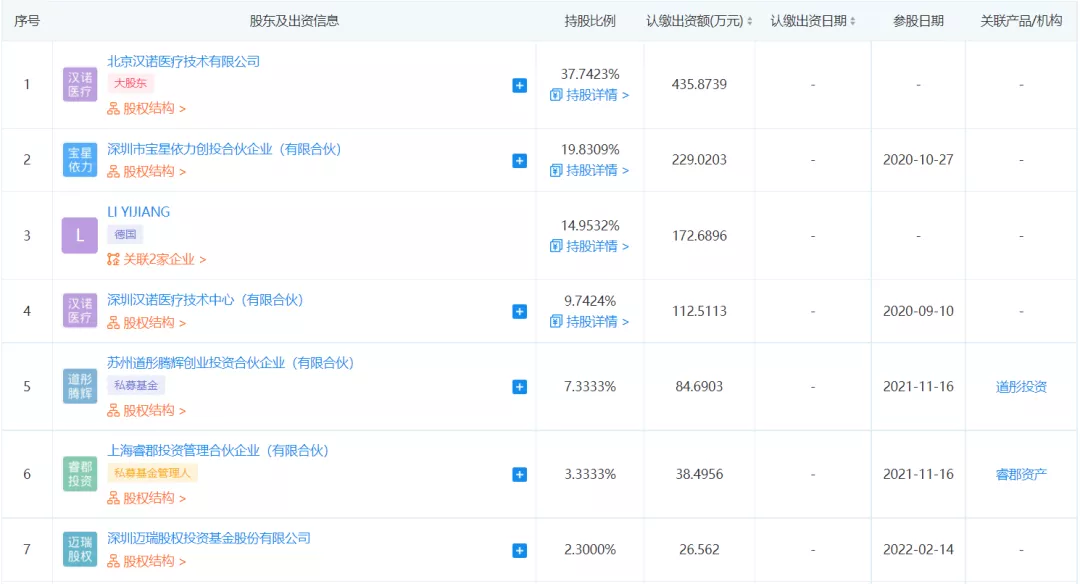企查查信息显示,汉诺医疗是一家生物技术服务商,公司成立于2018年法定代表人为李鸣涛,注册资本1154.87万元,经营范围包含:二类、三类医疗器械的批发、零售;医疗器械的设计、开发、生产与销售等。