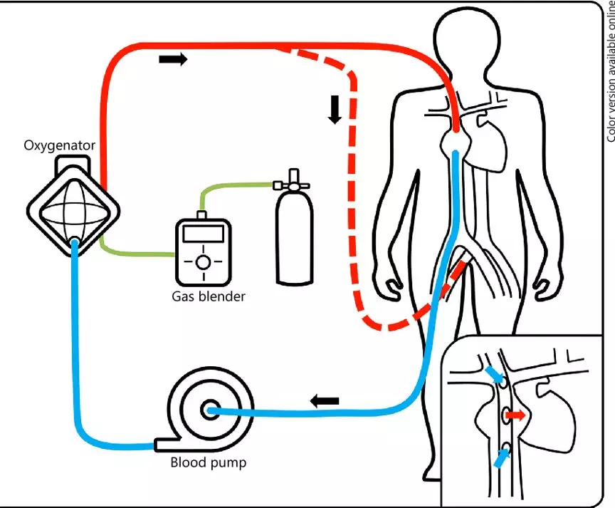 ECMO是心肺系统重症治疗的一种设备,原理是把静脉血引出体外,让血液与氧气充分氧合之后,再泵回体内,以代替心肺功能,可广泛应用于危重病人的急救。