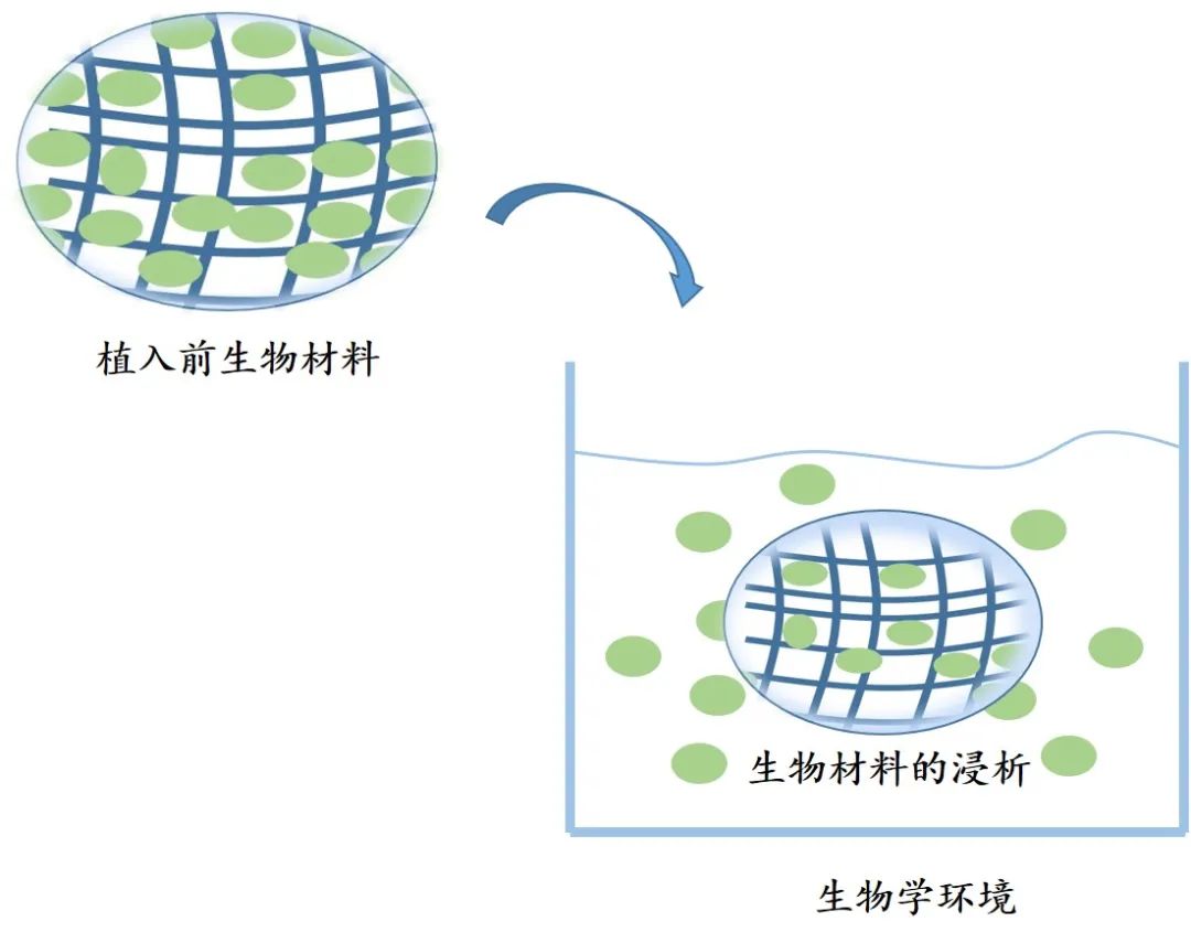 浸析现象最简单的原因就是在生物学环境中,材料中的物质以恒定扩散速率离开材料表面。浸析现象对生物材料的性能一般影响不大,主要危害是浸析产物可能造成局部或机体整体的生物反应。