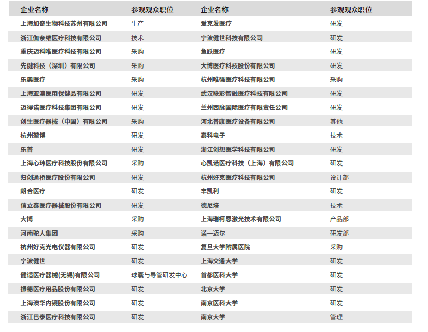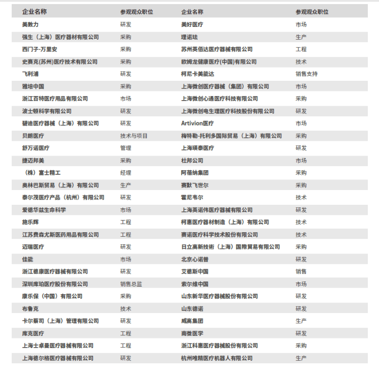 尤其全球医疗器械行业TOP 100的企业中,许多都是Medtec的观众。这不仅证明Medtec在国际上的影响力,也表明展会的专业性和权威性。对于参展企业来说,这意味着他们可以在Medtec上接触到全球顶尖的医疗器械企业,拓展国际视野,寻找合作机会。