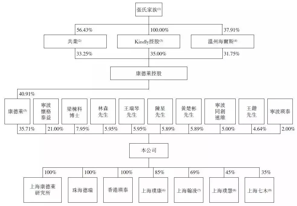 据悉,康德莱是由康德莱控股直接持有40.91%的股权,而后者则是由共业、Kindly控股、温州海尔斯共同控制的公司,分别持股33.25%、35%和31.75%。值得一提的是,郑爱平、张伟分别持有共业33.42%和23.01%的股权,此外,两人还分别持有温州海尔斯23.2%和14.71%的股权。而郑爱平为张宪淼的妻子,张伟为二者的儿子。