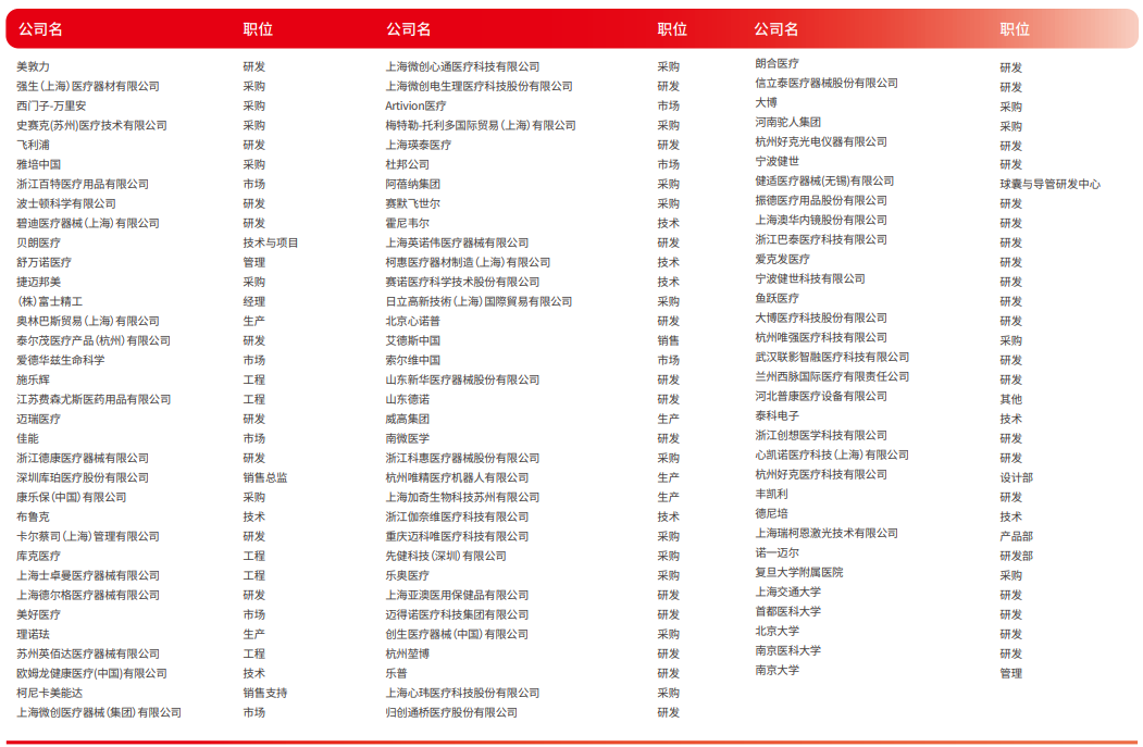 与上万医疗器械生产厂家的技术与采购人员面对面交流,捕捉覆盖上市/跨国集团的研发总监,采购经理等潜在买家,其中80%的参观者具有采购决策权或参与权。